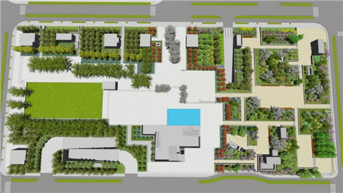 本项目位于**区,公园景观设计面积约为27000平方米。景观设计秉承着聚集,开放、多元化活动、正式、大气的特点。为人们创造一个开放的,大气的城市空间,为人们提供了方便聚集和活动的场所。北绿地的整体布局采用变化丰富的网格式结构,通过网格的灵活变化来围合出三种不同层级的活动空间及种植空间。